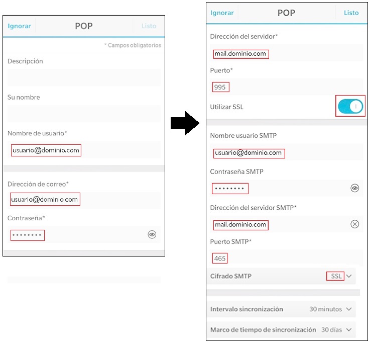 En esta sección los siguientes campos han de estar correctamente configurados: