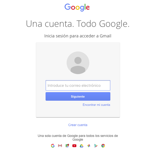 Si dispones de una cuenta de correo electrónico o bien quieres crear una nueva debes acceder siempre desde Gmail. Siempre debes acceder con el usuario y contraseña que hayas creado en Gmail.
