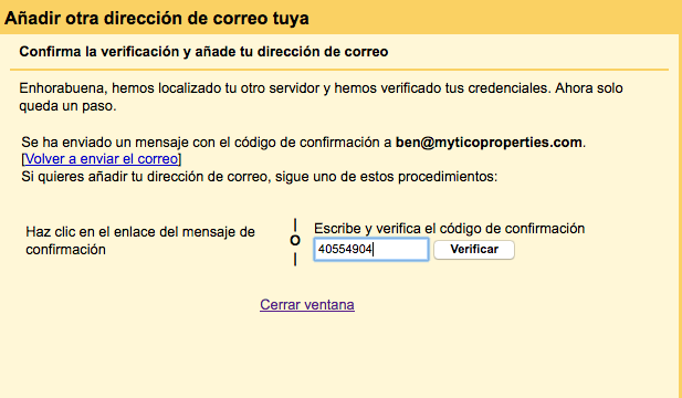 - Una vez recibido el correo de confirmación copie el codigo y peguelo en la ventana que corresponda según la siguiente captura.