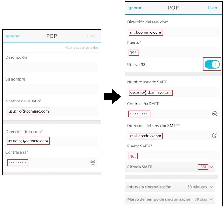 - La contraseña (la contraseña SMTP será la misma).