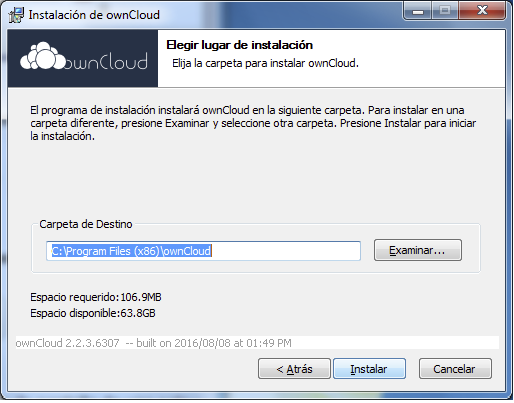 - En la siguiente ventana le informará en el sitio de su pc en el que se va a instalar el programa, haga click en el boton Instalar.