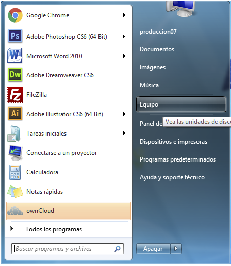 - En Windows puede localizar la carpeta donde se guardan los archivos pulsando el boton de inicio de windows y haciendo clic en opción “Equipo”.