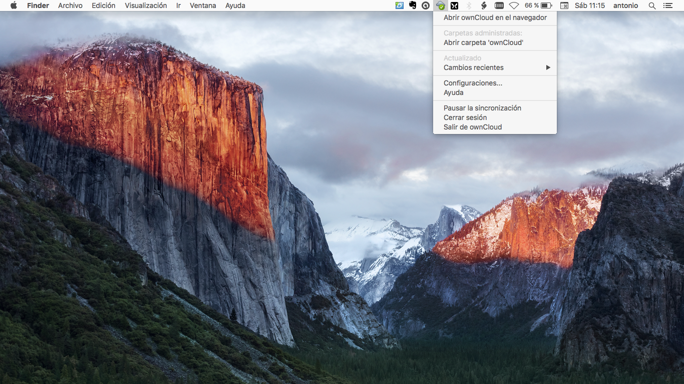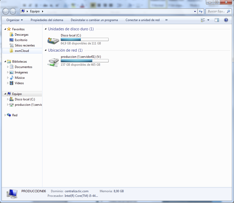 - Desde ahí puede elegir Abrir Owncloud en el navegador(Nube de Centraliza) o Abrir carpeta ownCloud (en el ordenador)