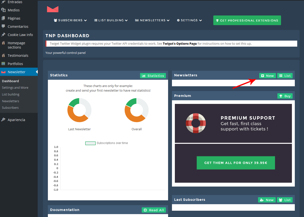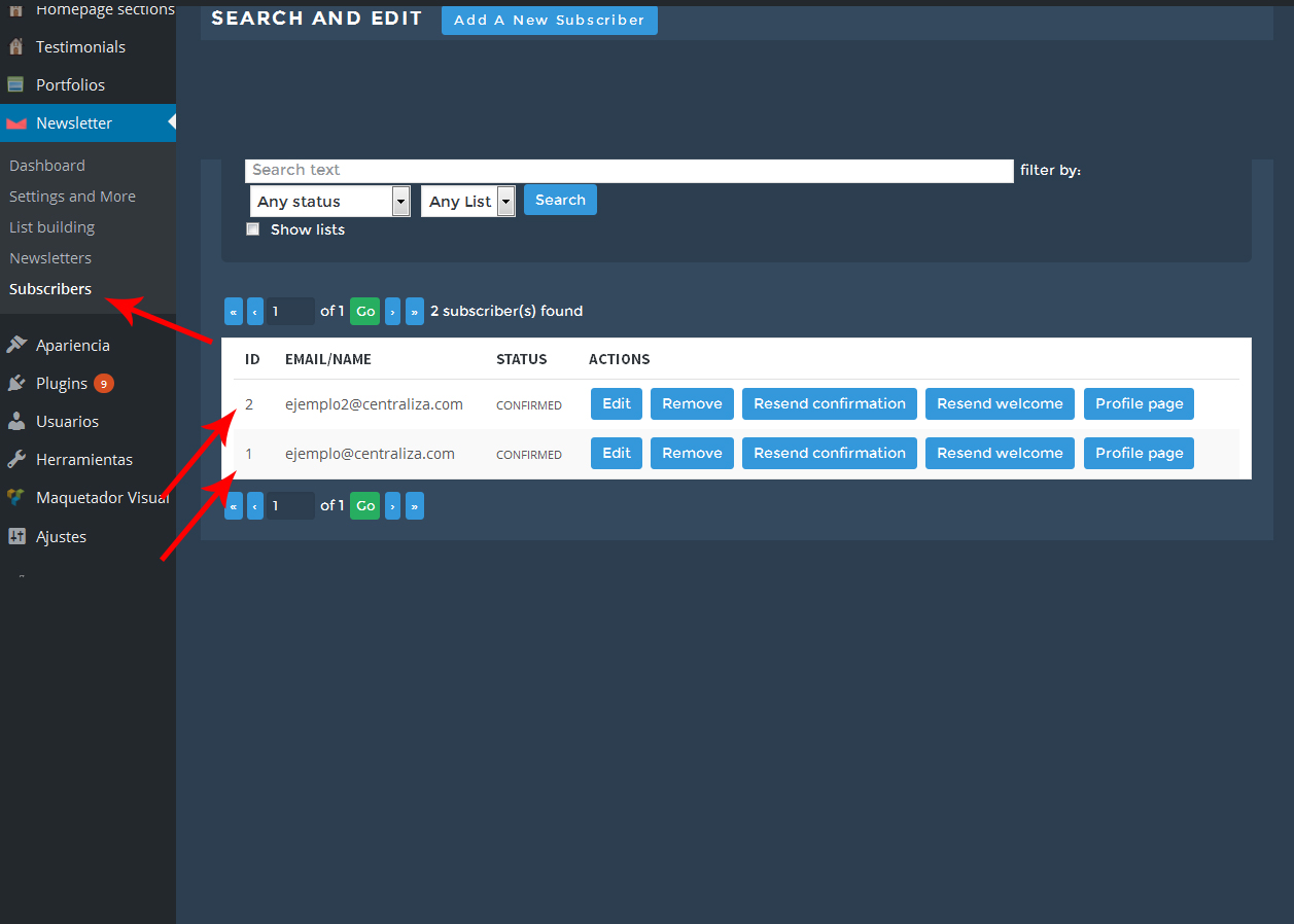 Podemos darlos de alta manualmente en el apartado “Add a New Subscriber”