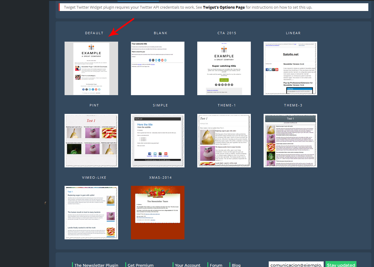 2.2 Creamos una Newsletter con una de las plantillas predeterminadas por defecto.