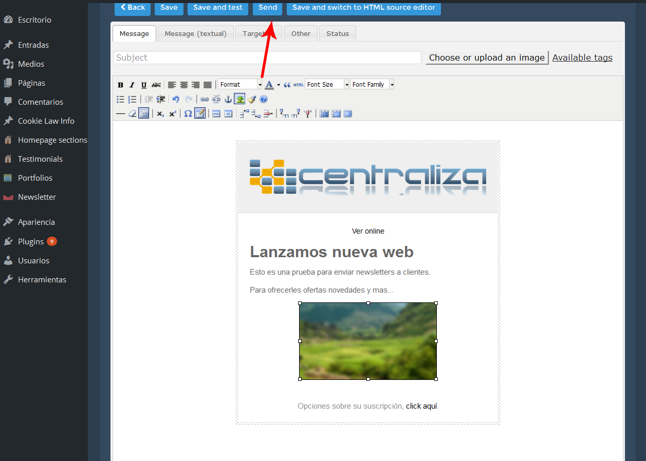 2.1 Duplicamos la Newsletter creada por centraliza como ejemplo y la modificamos para el nuevo envío.
